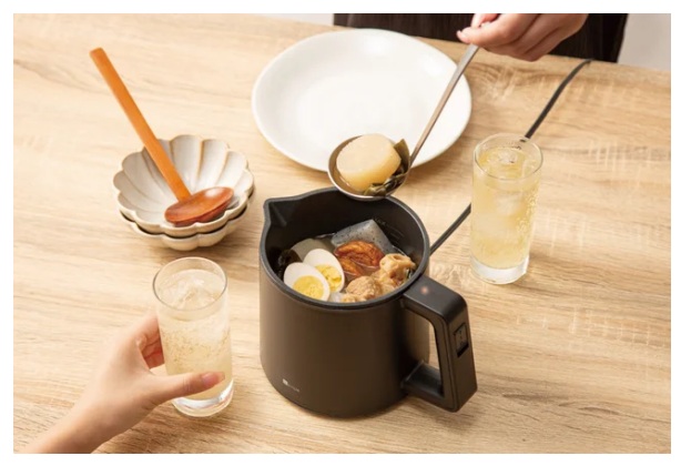 シリーズ累計の販売台数が7万台を突破した「1台3役の電気ケトルポット」が、「1台5役おてがる調理ポット」に進化して登場する。