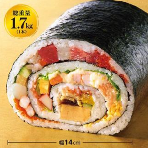 例年好評の、イオンの看板商品「銀座 鮨よしたけ監修 招福海鮮恵方巻」は「太くて 食べにくい」という声があり、リニューアルした。贅沢な味わいはそのままに量目を見直した。1本 1380円(本体価格、以下同じ)、ハーフ698円。