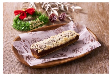 「ザクっと濃厚ショコラバー」は、なめらかなチョコケーキにザクザクのクランブルを組み合わせた、食感のコントラストが楽しいバータイプのショコラスイーツ。価格は155円。販売エリアは、北陸(富山県・石川県・福井県)・関西・沖縄県を除く全国。
