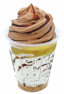 今回発売する「21時にアイス チョコバナナ」と「21時にアイス 紫芋モンブラン」は、夜アイス専門店チェーンである「21時にアイス」の上位人気を誇る容量330mlのボリューム満点のパフェアイス。いずれも本体価格428円。