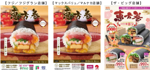 (株)フジ(広島県広島市、山口普社長)は12月20日(土)~2026年1月25日(日)の期間、2026年「恵方巻」の予約を、店頭とフジネットショップ、マックスバリュ・マルナカオンラインストアで受け付ける。引き渡しは 2026年2月2日(月)・3日(火)。