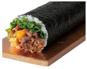 「こだわりの牛肉巻き」は、神戸牛の牛カルビにコクのある卵黄ベースのたれを合わせた。神戸牛の旨みが引き立つ巻き寿司。1本が1600円、ハーフが850円。