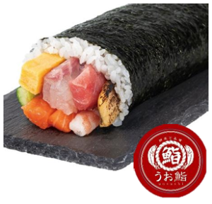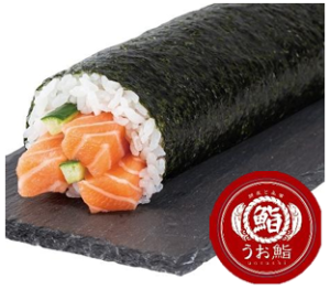魚屋の海鮮太巻き寿司(左)、魚屋のサーモン巻き寿司(右)