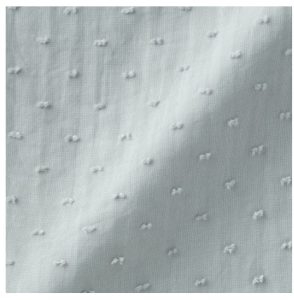 「二重ガーゼドットドビー」シリーズは、オーガニックコットン100%で二重ガーゼ生地をベースに、凹凸のあるドビー織りでドット柄の表情を加えた。やわらかく肌なじみのよいガーゼに軽やかな立体感が生まれ、シンプルながら上品な印象の素材だ。