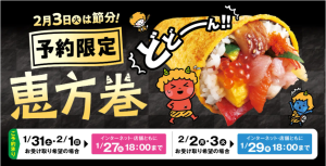 サミット(株)(東京都杉並区、服部哲也社長)が節分の恵方巻受注を始める。予約はインターネットまたは店頭(サービスカウンター)で受け付ける。予約商品は5アイテム、2月3日に店舗で販売する商品は13アイテムだ。