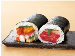 当日販売商品は、リーズナブルな具材と価格の13アイテム。「まぐろ鉄火中巻」「サーモン中巻」「まぐろすきみ中巻」「牛カルビ・海老かつ中巻」「ふっくら玉子(昆布醤油炊き込みご飯)・サラダ中巻」「細巻2本セット 各種」「7種具材の豪華海鮮巻」「本鮪中トロが入った3種のまぐろ巻」「旨み味わう柔らかヒレかつ巻」「活〆穴子とふっくら玉子の上和風巻」「まぐろや海老が入った海鮮ユッケ風太巻」「5色開運中巻セット」「3色開運恵方巻セット」。
