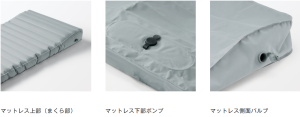 「空気でできたマットレス」は、空気を入れて膨らませることで簡単にマットレスとして使用でき、使わない時は空気を抜いて付属の袋に入れることでコンパクトに収納できる。マットレスに内蔵されているポンプを足で踏むだけで膨らませることができる。災害などの非常時にも商品のみで使用できるよう付属品不要の仕様にしている。素材はしなやかで耐久性があるTPU (防熱可塑性ポリウレタン)。昼寝用マット、アウトドアなど車中泊、来客用布団、防災備品など、幅広いシーンで活躍する。まくらとしても使えるよう、マットレス上部に厚みをもたせ、マットレスとまくらを一体化した設計にしている。