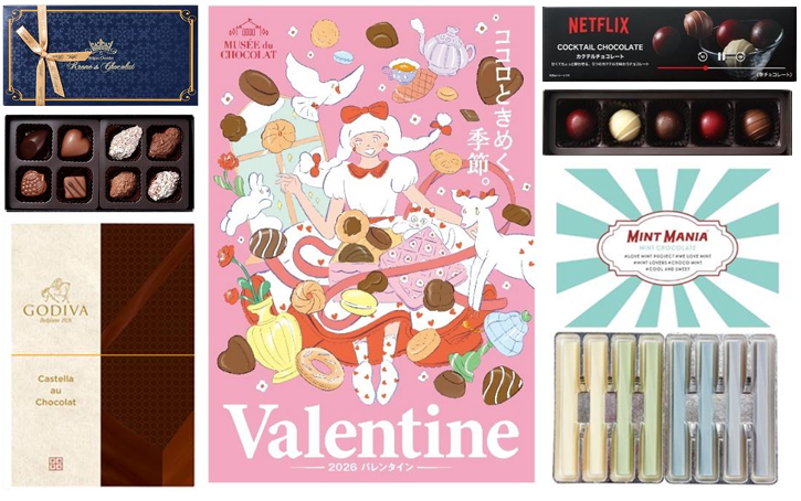 たとえばイトーヨーカドー限定のオリジナル商品として、「きのみとショコラセレクション」「サンリオキャラクターズ×ゴンチャロフ」「Netflix コラボレーション商品」「MINT MANIA(ミントマニア)」など、「この時期だけ」「ここでしか手に入らない」特別な商品を多数ラインナップする。さらに、素材や製法にこだわった商品として、「GODIVA カステラオ ショコラ」や「茶乃逢 プレミアム 抹茶スイートチョコレート」なども取り扱う。