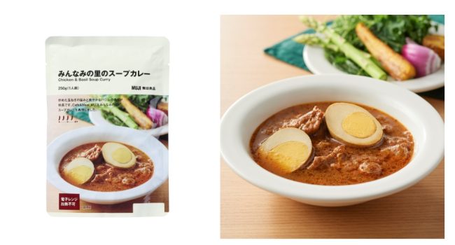 発売するレトルト食品「みんなみの里のスープカレー」は、千葉県鴨川市で商品化した米「プリンセスサリー」のぱらっとした食感と豊かな香りを楽しむために「Café&Meal MUJI みんなみの里」が開発した人気のスープカレーを自宅でも楽しめるよう商品化したもの。「みんなみの里のCafé&Meal MUJI」を訪れる半数近くの顧客が注文する人気メニューだ。