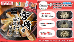 「セブンプレミアム 宮崎市ぎょうざ協議会監修焼餃子(12個入)」は、ラードで焼いたような調理を再現し、カリッとした焼き目と香ばしい風味を実現した。薄皮のひとくちサイズで食べやすく、キャベツにニラを加えることでパンチのある味わいになった。ラードと宮崎県産のニラで宮崎餃子ならではの味を再現した。販売エリアは、東海・近畿・中国・四国・九州・沖縄の9216店(2025年12月末時点)。