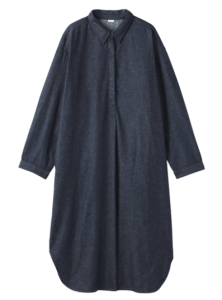 「婦人 カポック混 ライトデニム 長袖ワンピース」 6990円