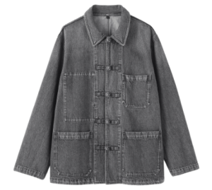 「紳士 木の実から使ったカポック混デニム 結び釦ジャケット」7990円