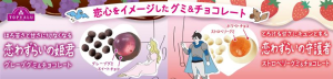 「恋わずらいの守護者」は誠実な守護者の胸に芽生えた小さな恋をイメージした。グミの食感とストロベリーの酸味、ホワイトチョコのまろやかさが同じに楽しめる。