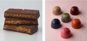 味わい・エレガンス・創造性に突き動かされた、ニース発のメゾン。ショコラ・ドバイ・デ・ジル(左:1枚入り、140g) 5400円、ニースコレクション(右:6個入り) 5400円。