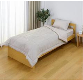 カバーのいらない温度調整軽量掛ふとんは、肌ざわりの良い生地を使用し、洗濯機で丸洗いできるので、カバーは不要。温度に合わせて余分な熱を吸収・放出して温度調整するアウトラスト®温度調整わたを使用している。カラーは2色、シングルロングは8778円、ダブルロングは1万4080円。