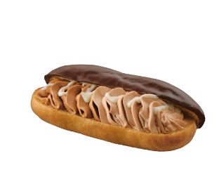 「クワトロチョコエクレア」は、「パキッ」「ふわっ」の異なる食感とエクレア史上最多となる「4種のチョコ具材」が織りなすおいしさを体験できる新商品。チョコクリームは、クーベルチュールチョコを使用し、芳醇な香りとなめらかなくちどけを、ダークチョコクリームは、濃厚な香りとコクのある味わいが楽しめる。価格は368円(本体価格、以下同)。