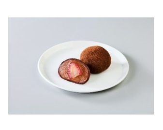 「まるごと一粒 ショコラ苺大福」は、まるごと一粒の苺をチョコの風味が豊かな濃厚チョコあんと柔らかい餅生地で包んだ。苺の甘酸っぱさと濃厚チョコの甘みが相性抜群の大福。価格は260円。