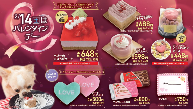 2月14日(土)のバレンタインデーに向けては、愛を伝える「本格ごほうびスイーツ」を提案する。今年のバレンタインは、チョコではなく「ベリー」と「豆乳」を主役に、愛犬の健康と幸せを願う「優雅なスイーツタイム」を演出する。