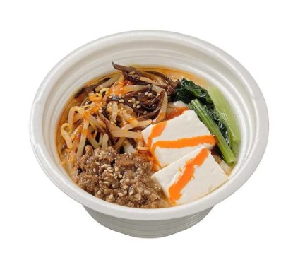 「あったかスープの豆乳担々ごはん」は、豆乳が辛みをやさしく包み込み、まろやかで後引くスープにごまの香ばしさ、肉みそのコクとほどよい辛みを重ねた担々ごはん。ヘルシーさを意識しながらも、コクと旨味を感じられ、食事としての満足感もしっかりと楽しめる。価格は430円。