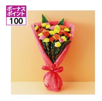 「竹中庭園緑化 彩りカーネーションブーケ」早得価格で2700円(本体価格、以下同)、通常価格は3000円。