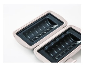 発売する商品は、電子レンジで焼き料理が手軽に行える食洗機対応のレンジグリルシリーズ。電子レンジのマイクロ波を熱に変えてプレート自体が発熱し、直火のような調理が可能となる。