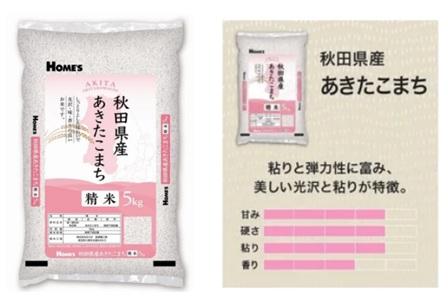 「HOME’S 秋田県産 あきたこまち 精米5kg」は、白くふっくらとした炊き上がりが特徴で、上品な甘さが楽しめる。程よい粘りと弾力があり、毎日食べたくなるバランスの取れた食味。価格は3980円。