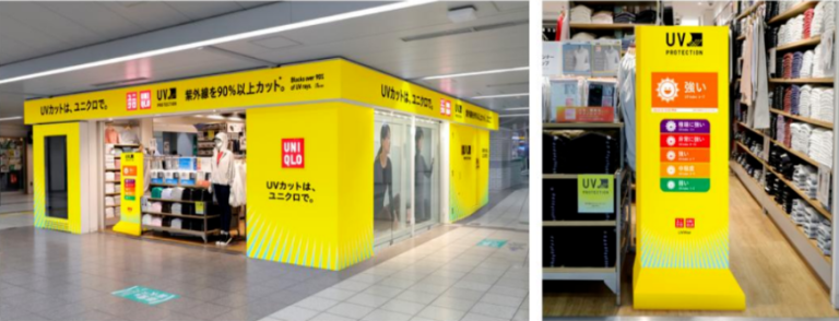 (株)ユニクロ(山口県山口市、塚越大介社長兼COO)は 3月16日(月)、紫外線が増える春から初夏に向け、全国の駅ナカ店舗を中心に外装を黄色に装飾した「黄色いユニクロ」を展開すると発表した。店頭にはその日の紫外線量を数値で示す「UV指数計」を設置し、外出前に対策を促す取り組みを強化する。