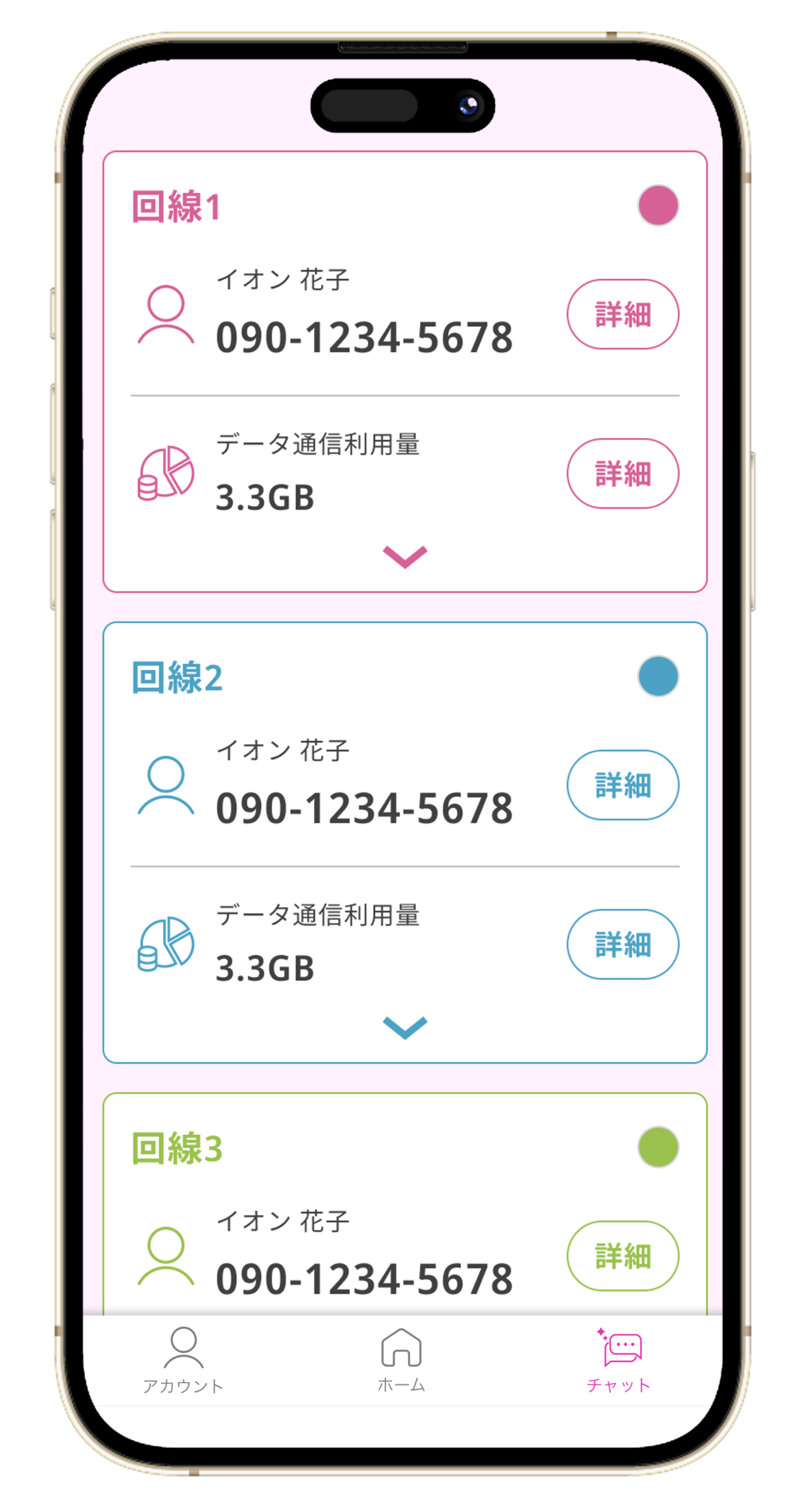 とくに、家族1契約・最大8回線でギガ(データ通信容量)を分け合って利用いできる「シェアプラン」利用者向けの改善が大きい。最大8回線を一覧で確認でき、回線ごとに色分けや名前表示を行うことで視認性を向上させる。よく使う機能を回線単位でピン留めできるなど、日常的な操作性を高めた。