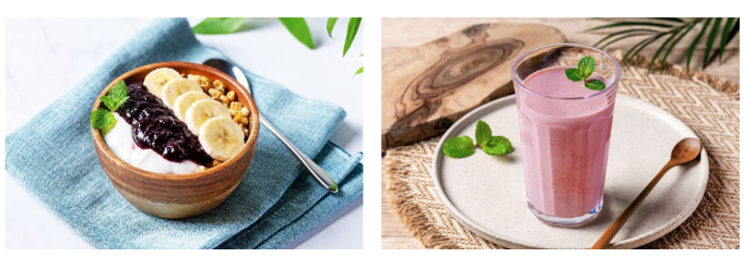 甘酸っぱく濃厚な味わいと3種の果実が生む奥行きのある風味が特長。ヨーグルトにのせてアサイーボウル風にしたり、スムージーやパンケーキしたりと活用できる。