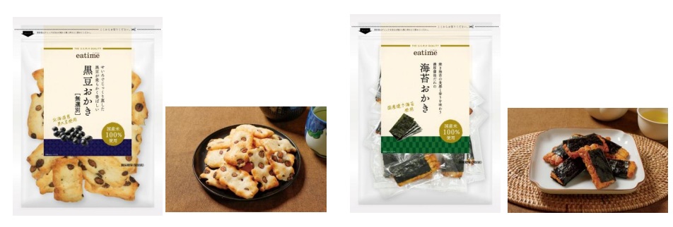 ユナイテッド・スーパーマーケット・ホールディングス(株)(東京都千代田区、井出武美社長)は4月3日(金)、プライベートブランド「eatime」から「せいろでじっくり蒸した黒豆が柔らかく香ばしい黒豆おかき[無選別]」と「焼き海苔の食感と香りを味わう濃厚醤油だれの海苔おかき」を発売した。(株)マルエツ、(株)カスミ、(株)いなげや、(株)イオンフードスタイル各店で取り扱う。