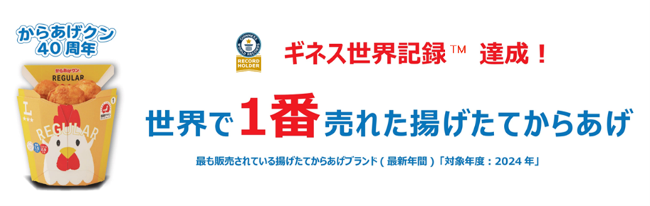 (株)ローソン(東京都品川区、竹増貞信社長)は、看板ホットスナック「からあげクン」が発売40周年を迎え、“最も販売されている揚げたてからあげブランド(2024)”としてギネス世界記録™に認定されたと発表した。