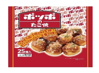 「ポッポのたこ焼 25個入り」は、大粒のタコを使用し、しっかりとした具材感が楽しめるたこ焼に仕上げた。だしの風味を活かした、香り高く奥行きのある味わいが特長の商品。価格は499円。