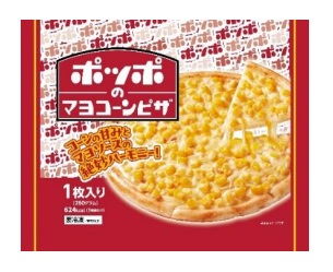 「ポッポのマヨコーンピザ 1枚」は、甘みのあるコーンとコクのあるマヨネーズが相性よく調和した味わいのマヨコーンピザ。家庭のオーブンで調理しやすい9インチサイズに仕上げた。価格は399円。