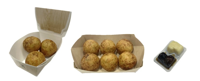 「揚げたこ焼き」は、店内で揚げたできたてにこだわり、とろりとした生地とカツオだしの旨味が特徴。大きめにカットしたたこで食べ応えを出し、ソースとマヨネーズは別添えにして、いつでもベストな状態で味わえるようにした。