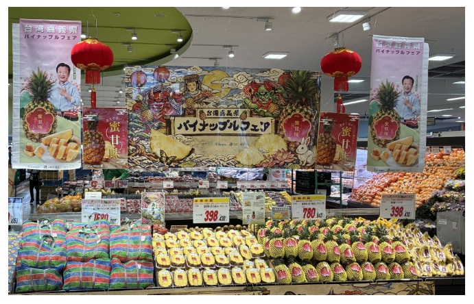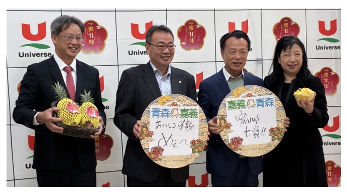 流通スーパーニュース > 新商品 > ユニバースnews|台湾・嘉義(かぎ)県産パイナップルフェア開催 ユニバースnews|台湾・嘉義(かぎ)県産パイナップルフェア開催 新商品 / 2026年04月15日 ツイート (株)ユニバース(青森県八戸市、三浦建彦社長)は4~5月中旬ごろまで、台湾・嘉義県産パイナップル「蜜甘味」を、ユニバース全59店舗で販売する。 「蜜甘味」は、酸味が少なく甘くてまろやかな味わいで、芯までおいしいパイナップルとなる。 発売に伴い、4月10日(金)ユニバース三沢堀口店で、翁章梁(おう しょうりょう)台湾嘉義県知事と生産者の陳映延(ちん えいえん)氏による宣伝販売を実施した。 ツイート