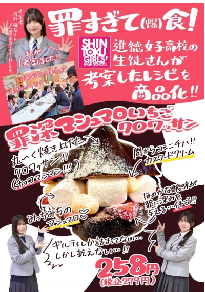(株)フレスタ(広島県広島市、谷本満社長)は、学校法人進徳学園進徳女子高等学校との産学連携の一環として、春の新商品として「罪深マシュマロいちごクロワッサン」を共同開発した。
