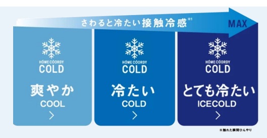 「コールドシリーズ」は、イオンが企画・開発した接触冷感素材を使用した、寝具・インテリア商品。「爽やか COOL」「冷たい COLD」「とても冷たい ICE COLD」の3段階の商品を用意して、好みの冷たさや機能を選べるようにしている。