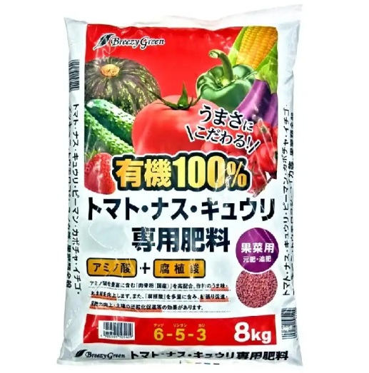 物価高が続く今、家庭菜園にチャレンジする方に向け、果菜類全般に使える「Breezy Green有機100%トマト・ナス・キュウリ・ピーマン肥料6-5-3 8kg」(税込価格1480円)を発売する。これ1つで植え付け時はもちろん、野菜の成長途中の追肥としても使用可能だ。