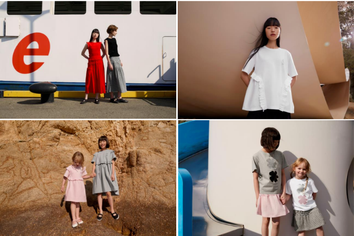 今回の協業では、バンセン氏が以前から関心を寄せていた子ども服を初めて展開する。大人とのリンクコーデが楽しめるドレスやTシャツ、スコートを揃え、ウエスト調整機能やポケットなど実用性も備えた。
