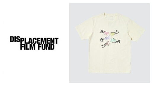 「Displacement Film Fund」のデザインTシャツの売上による利益は、避難を余儀なくされた映画制作者、または避難民としての経験を描いた実績のある映画制作者を支援するために寄付される。