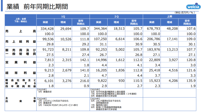 ウエルシアnews|第2Q売上高6788億円7.6%増・経常利益21.6%増