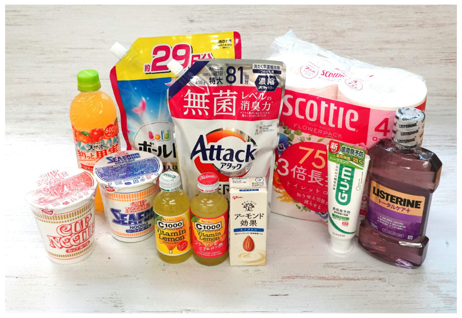 たとえば「完全メシ どん兵衛 カレーうどん 112g」は通常売価429円(税込価格・以下同)から100円引き(約23%OFF)、「アタックZERO 詰替大 810G」は877円から220円引き(約25%OFF)など。