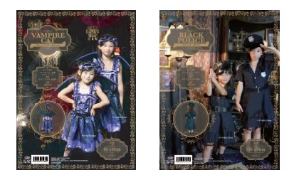「ヴァンパイアキャット」「ブラックポリス」は、人気のモチーフをかわいくアレンジした商品。80~150cmとキッズからジュニアまで対応したサイズ展開だ。各2199円。