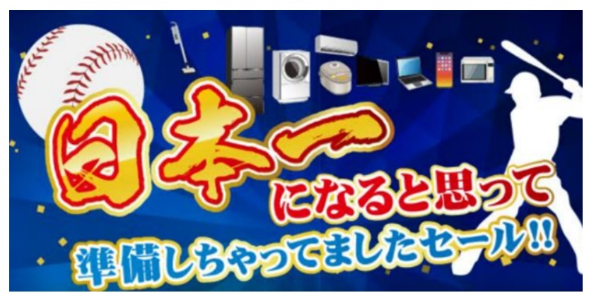 (株)ノジマ(神奈川県横浜市、野島廣司社長)は、応援する横浜DeNAベイスターズの2年連続の日本一を願って準備していたポイントの還元や特価商品を大放出する「日本一になると思って準備しちゃってましたセール」を、10月22日(水)から11月3日(月・祝)の期間開催する。