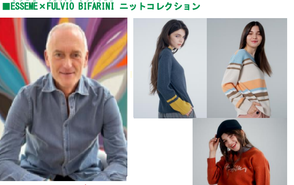 またペルージャ在住のアーティスト、フルヴィオ・ビファリーニ氏と、イオンのオリジナルファッションブランド「ESSEME」がコラボしたニットコレクションといったイタリアフェアならではのコラボアイテムも展開する。