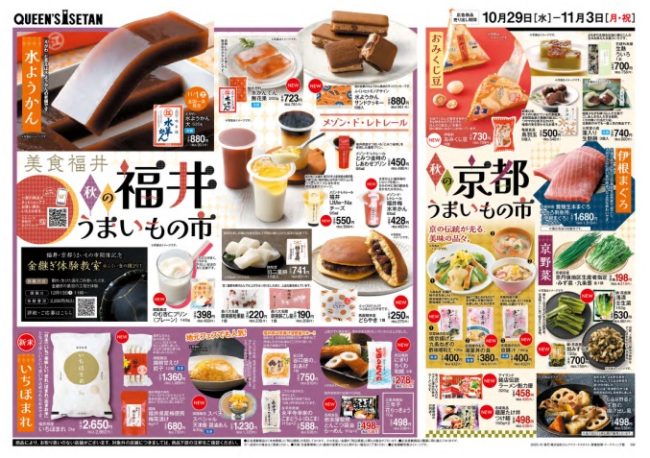 三越伊勢丹のグループ会社で、首都圏を中心に21店舗のスーパーマーケット(クイーンズ伊勢丹)を運営する(株)エムアイフードスタイル(東京都新宿区、雨宮隆一社長)は、「福井・京都うまいもの市」を、10月29日(水)から~11月3日(月・祝)の期間限定で開催する。