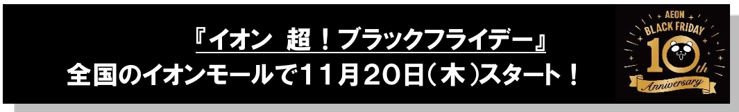 イオンモール(株)(千葉市美浜区、大野惠司社長)は、全国のイオンモールで11月20日(木)から11月30日(日)までの11日間、「イオン 超!ブラックフライデー」を開催する。