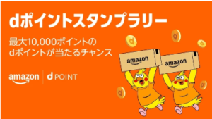 ブラックフライデー終了までにdアカウントとAmazonアカウントを連携し、買物時にdポイントを利用すると、利用ポイントに応じて抽選で最大1万分のdポイントが当たるスタンプラリーに参加できる。