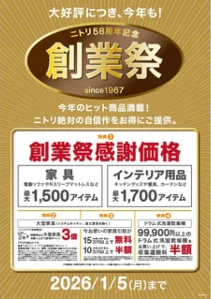 ニトリnews|「ニトリ58周年記念創業祭」11/28~2026/1/5開催