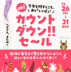 また新年のセールに先駆けて12月26日(金)~12月31日(水)の期間にも、旬のアイテムをセール価格で販売する「ららぽーとカウントダウンセール」を開催する。